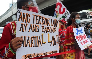 El Consejo Nacional del Frente Democrático Nacional de Filipinas denunció el 21 de julio al gobierno de Duterte por su designación del NDFP como "organización terrorista", diciendo que esto señala la escalada del terrorismo de Estado contra el NDFP y sus 18 organizaciones aliadas. Dijo que la etiqueta "terrorista" también verá una "escalada de ataques contra los activistas sociales legales, los defensores de los derechos humanos, los críticos y los opositores" que serán etiquetados arbitrariamente como miembros y asociados del NDFP.